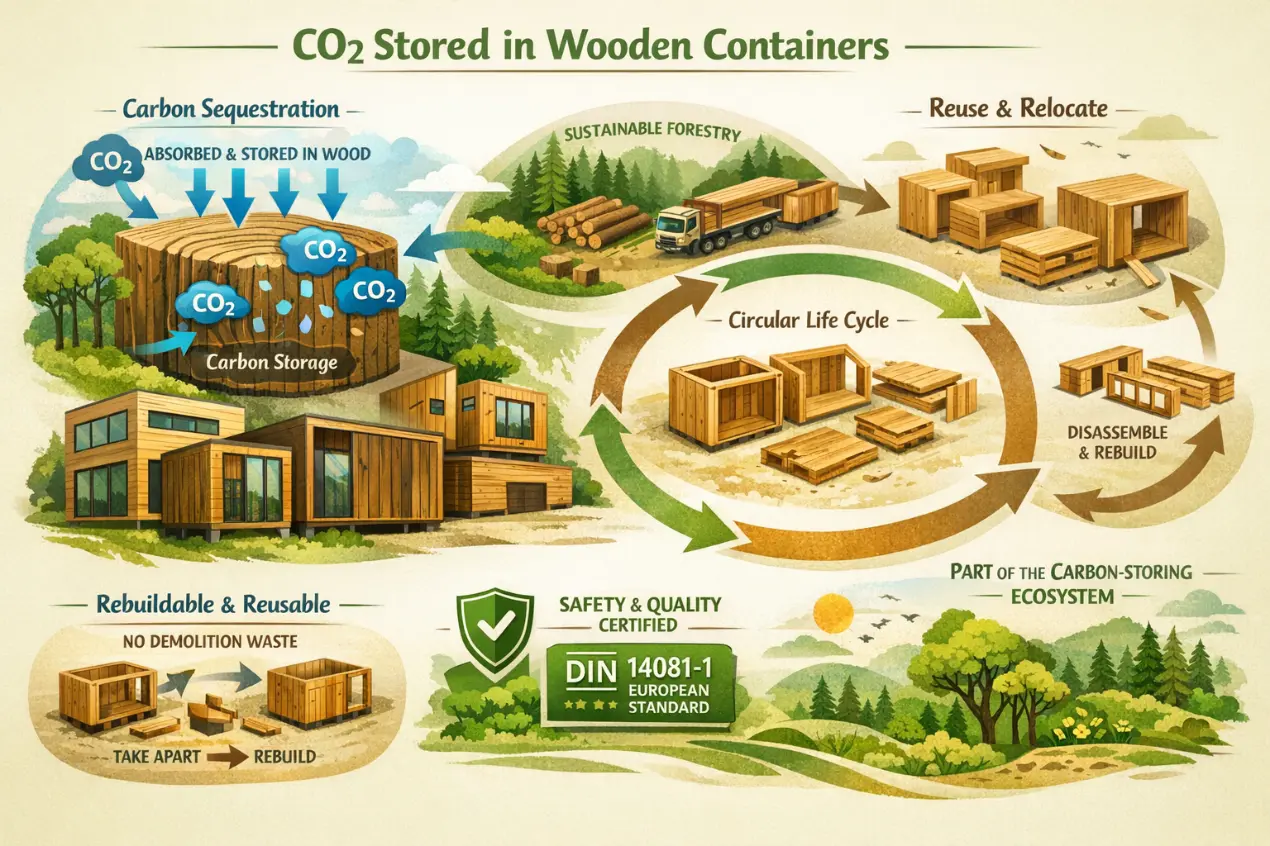 Our structures are more than just containers - they are carbon-storing ecosystems. While the timber actively sequesters CO2, our technique also emphasizes a "circular" life cycle. Our logs are marked in strict accordance with DIN 14081-1 European standards, ensuring they meet the same safety codes as permanent timber-framed houses. Because of this precision engineering, the building is fully rebuildable. If you decide to relocate, you can disassemble your structure and take it with you, preventing demolition waste and truly caring for our planet.